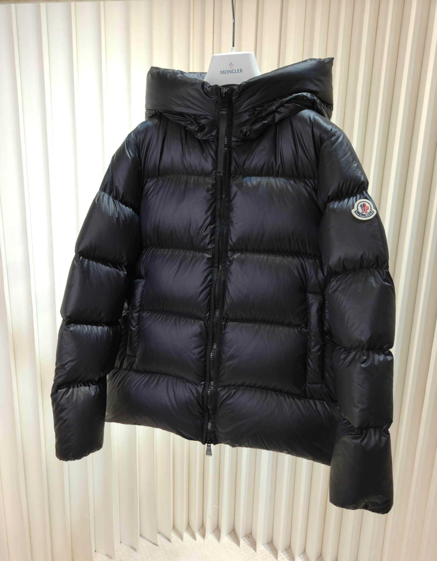 Signature Branding: Moncler logo patch on the sleeve adds an authentic touch.