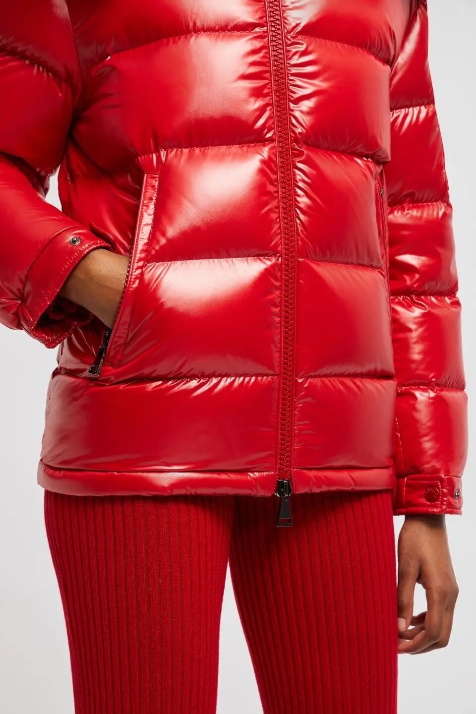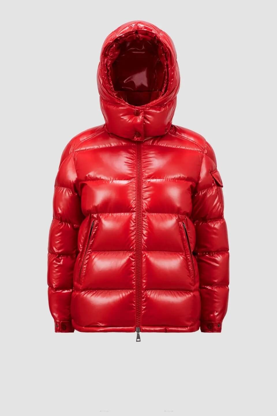 Vibrant Glossy Red Finish — A striking high-shine shell that elevates the jacket’s modern winter aesthetic while adding visibility in snowy conditions.