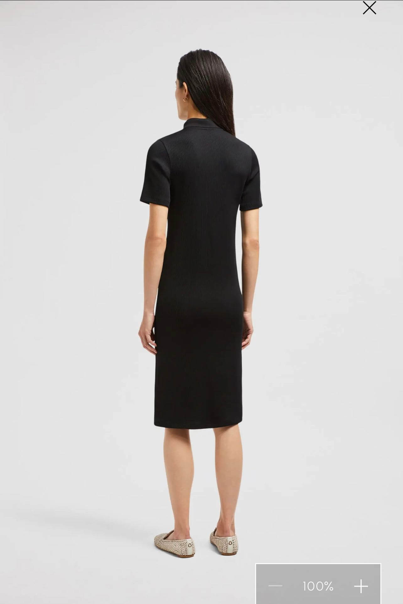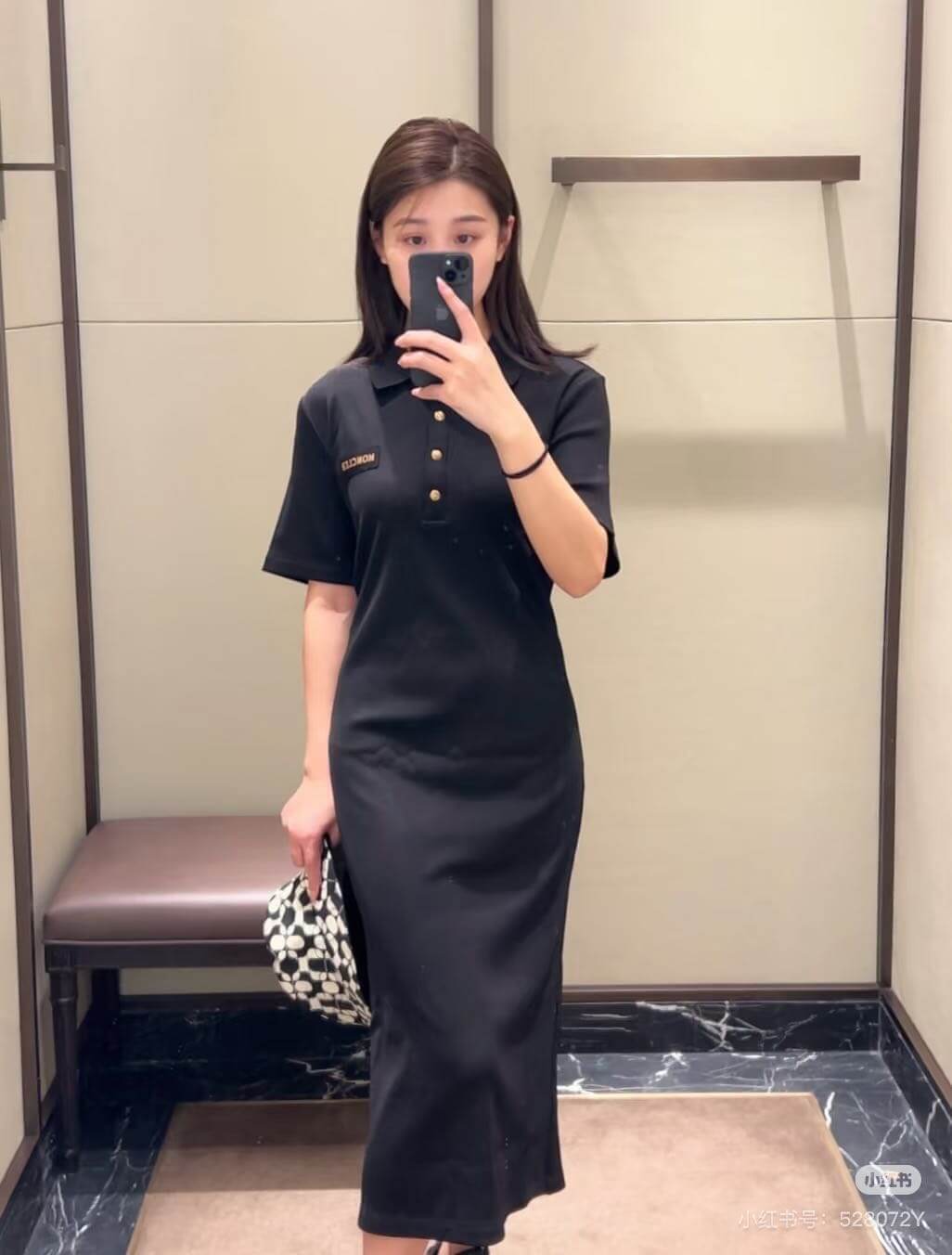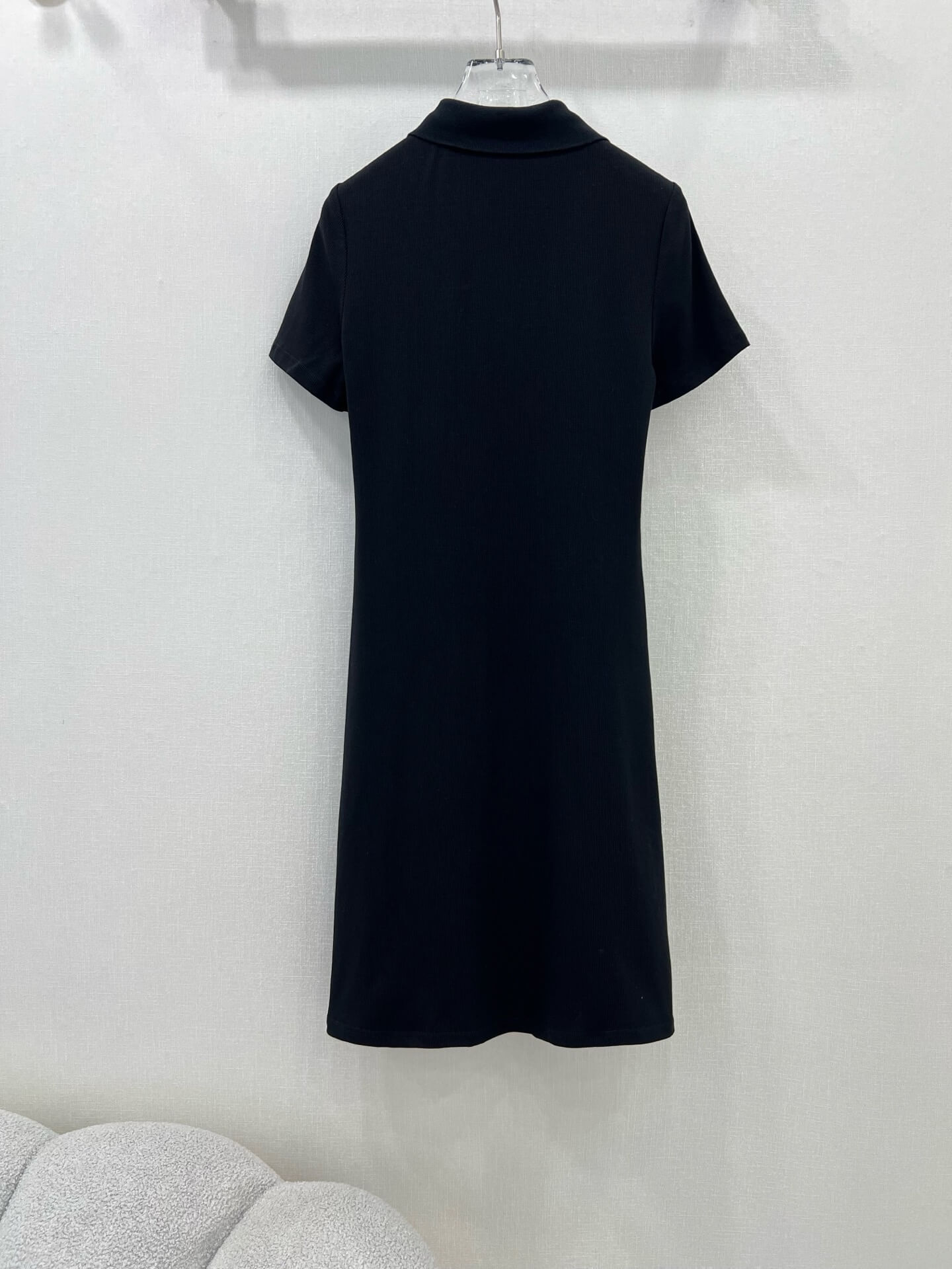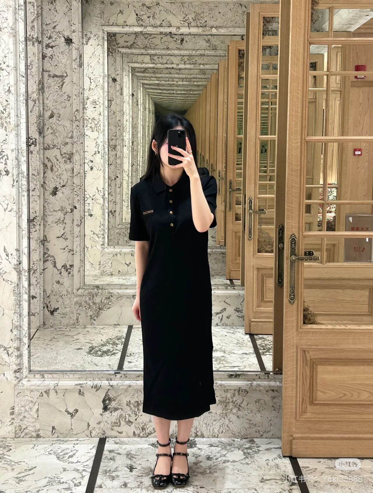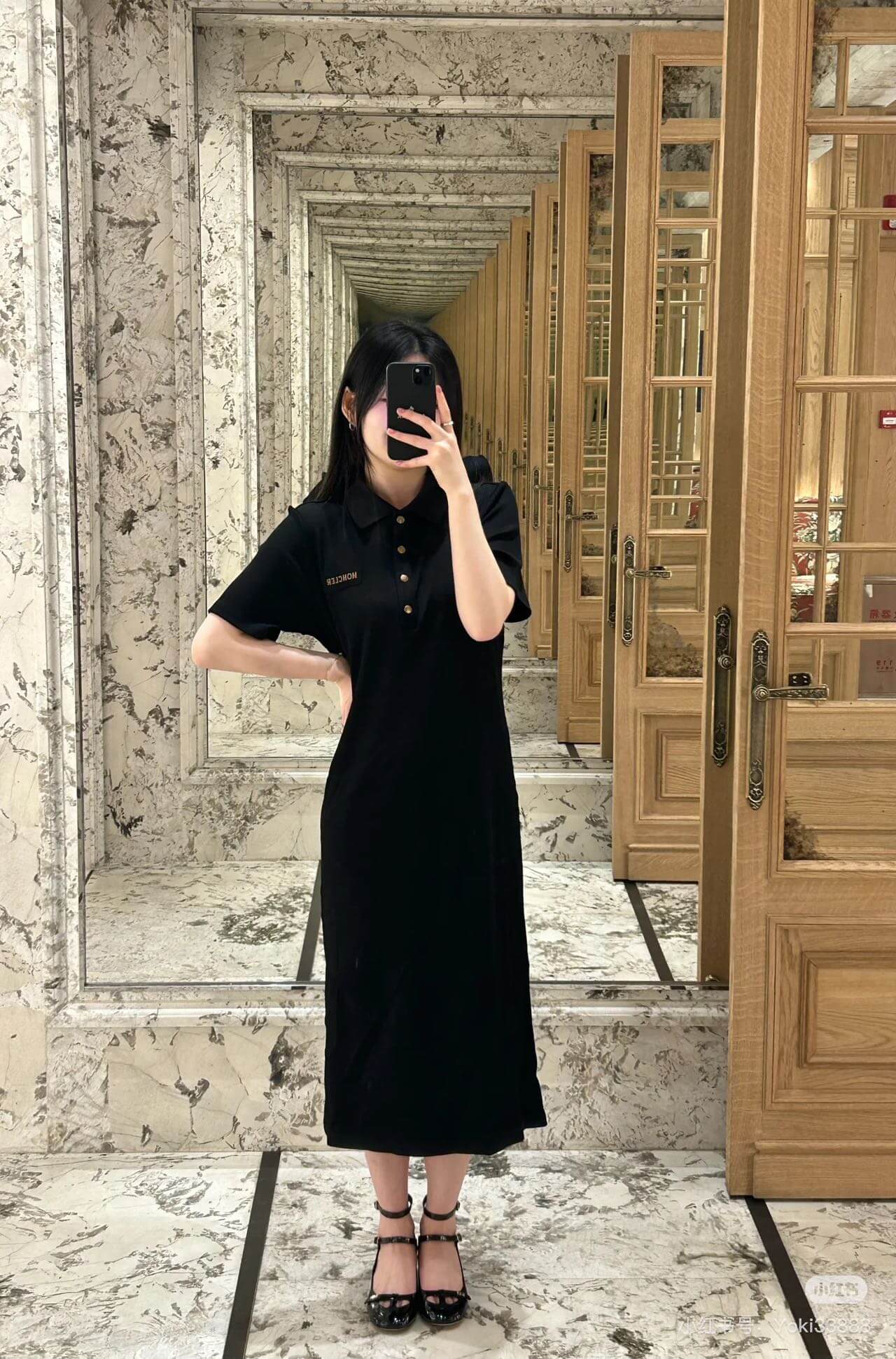 Effortlessly stylish, this black midi polo dress offers a refined silhouette. Featuring a classic collar, golden button placket, and a subtle textured finish, it’s perfect for a sophisticated yet comfortable look, whether for city explorations or casual gatherings.