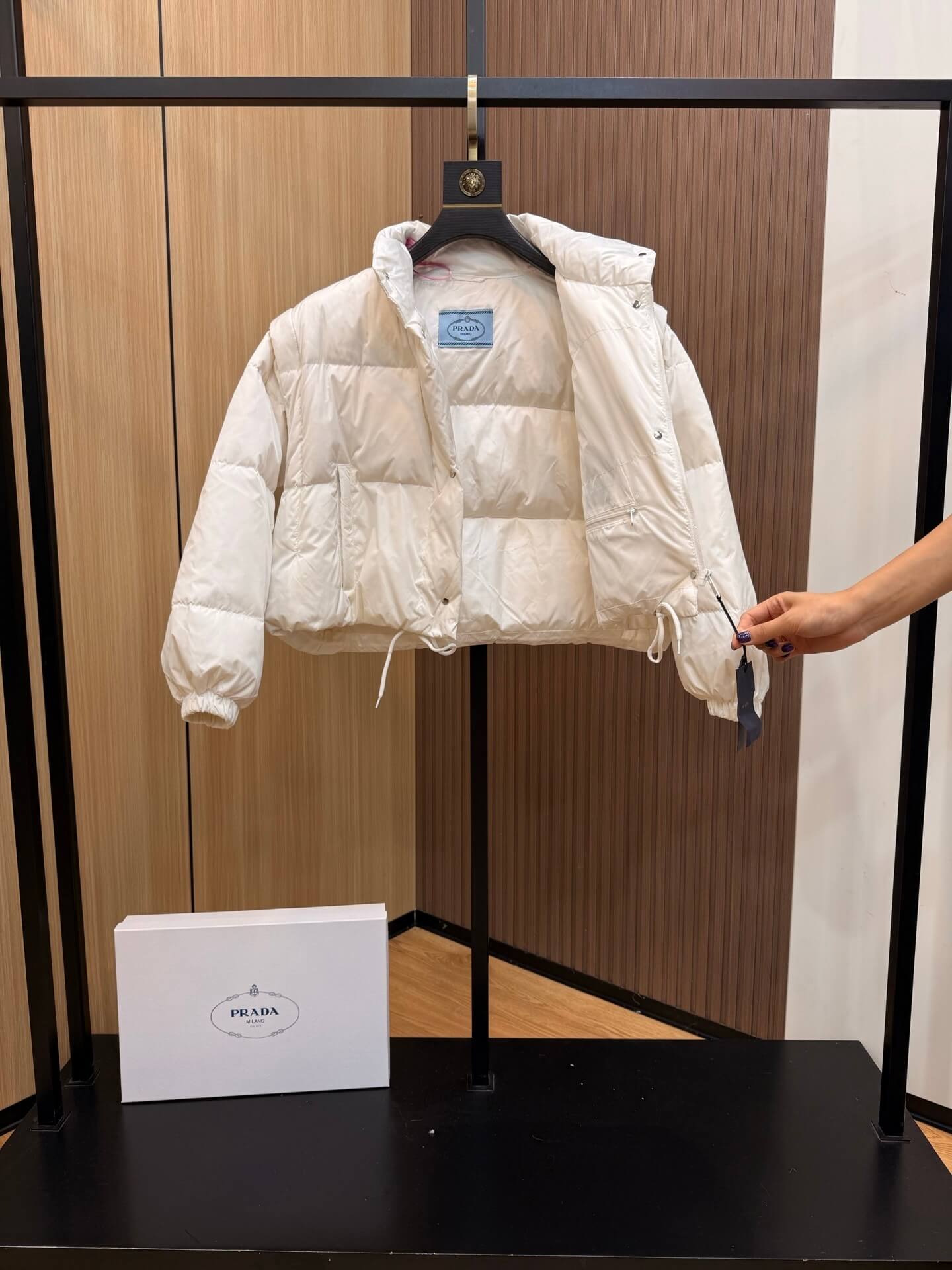 - Iconic Details & Warmth: Featuring a stand-up collar for extra protection against the wind and the signature Prada triangle logo, this jacket combines recognizable luxury with practical warmth. The premium goose down filling ensures you stay toasty in frosty conditions.