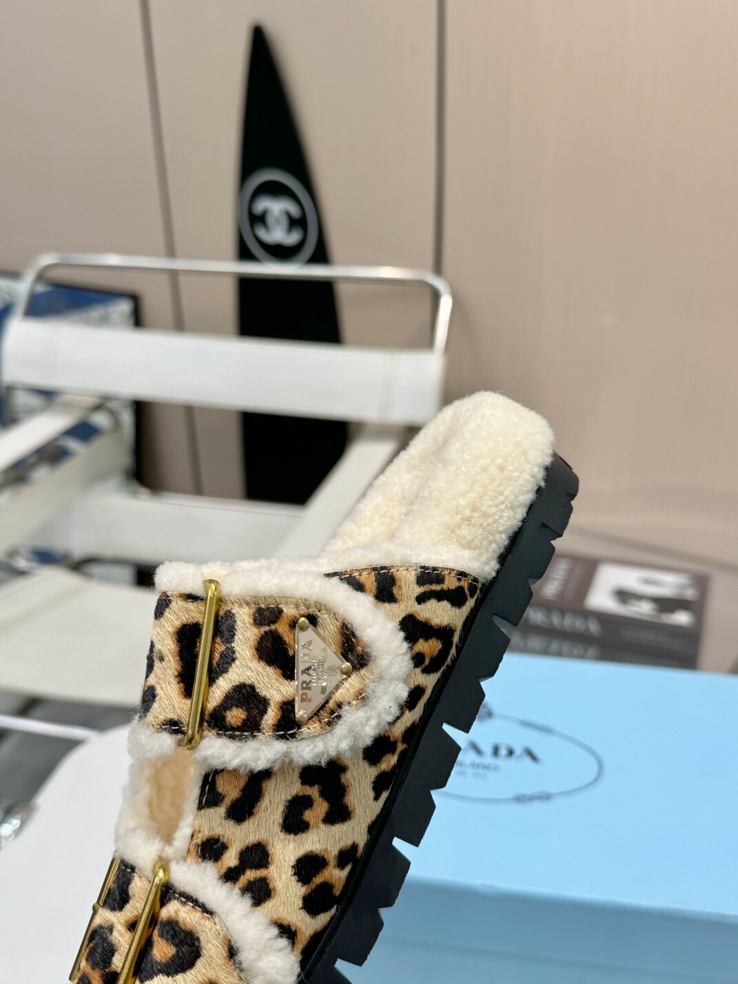 Color: Leopard print / Beige shearling
