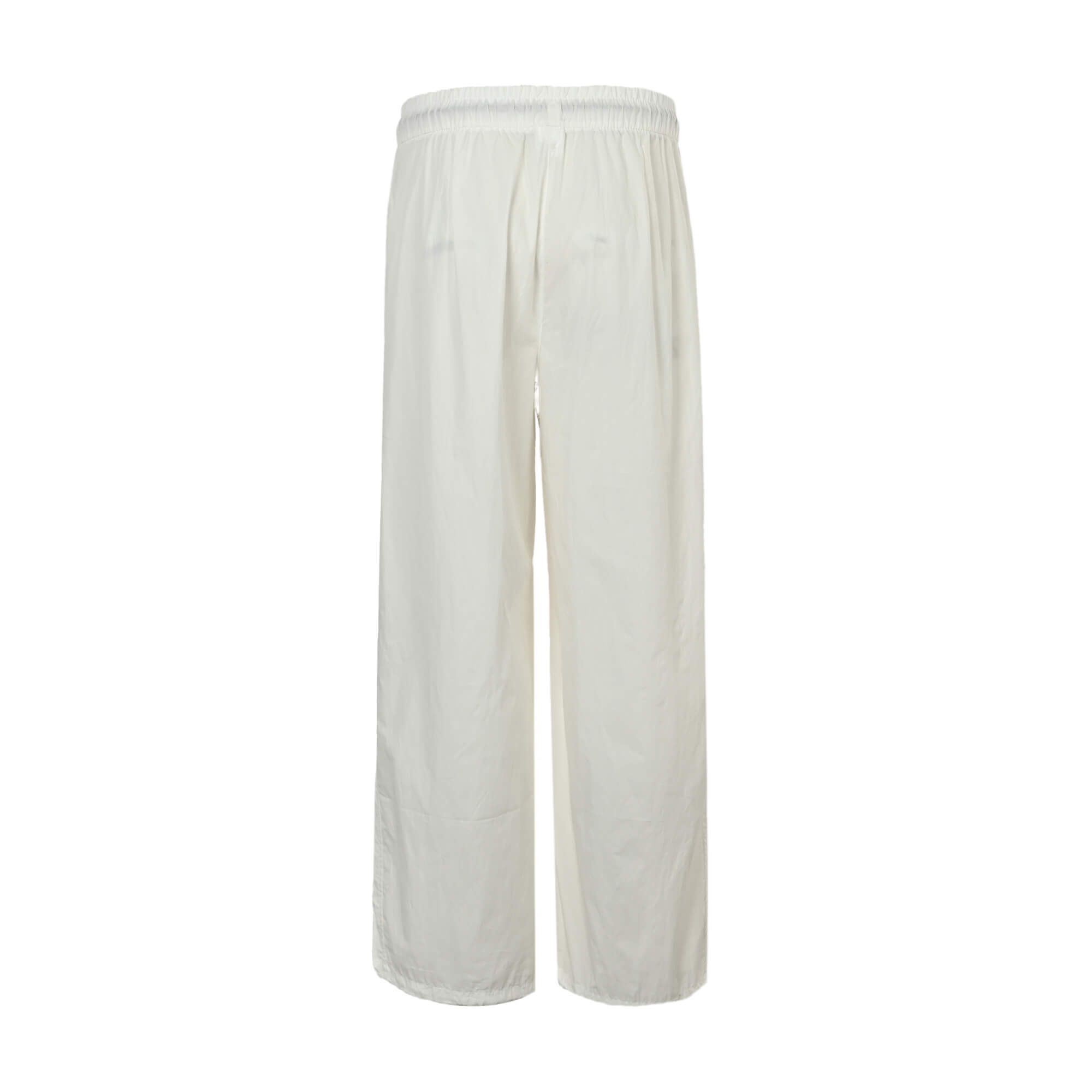 Experience ultimate comfort and versatile style with these white nylon trousers. Crafted from high-quality, washed cotton-like fabric, they offer a soft, breathable feel with a subtle wrinkled texture for a casual charm. Featuring an adjustable leg opening for a customizable fit (from relaxed to wide-leg) and an elastic waist for comfort, these trousers are perfect for any activity.