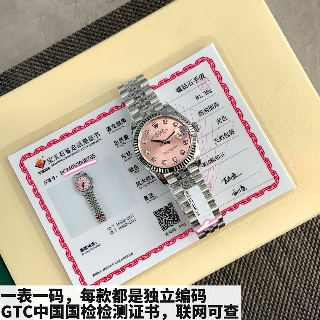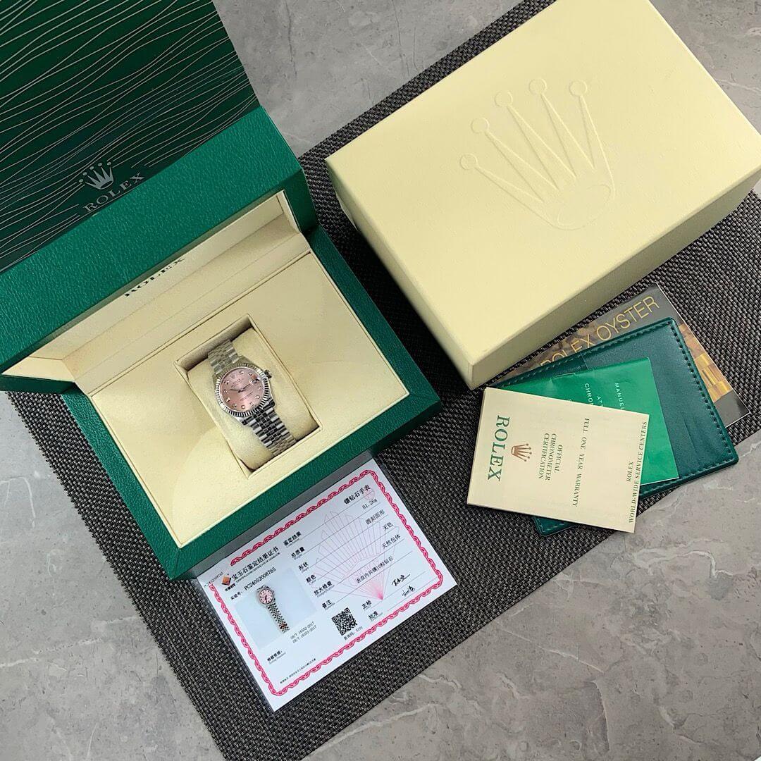 The Rolex Oyster Perpetual Datejust with a stunning pink dial is the perfect balance of elegance and style. Featuring diamond markers and a classic stainless steel bracelet, this timepiece exudes sophistication, making it the ideal companion for both formal and casual occasions.