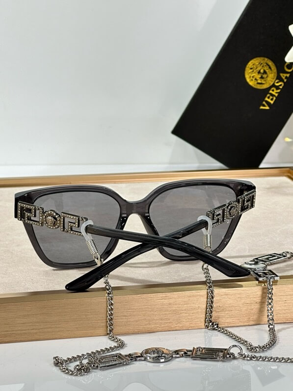 Elevate your style with these Versace-inspired Geometric Chain Cat Eye Sunglasses, blending elegance with a daring edge. Featuring a striking cat-eye frame and luxurious chain detailing, these sunglasses add a bold, high-fashion statement to any look while providing superior UV400 eye protection.