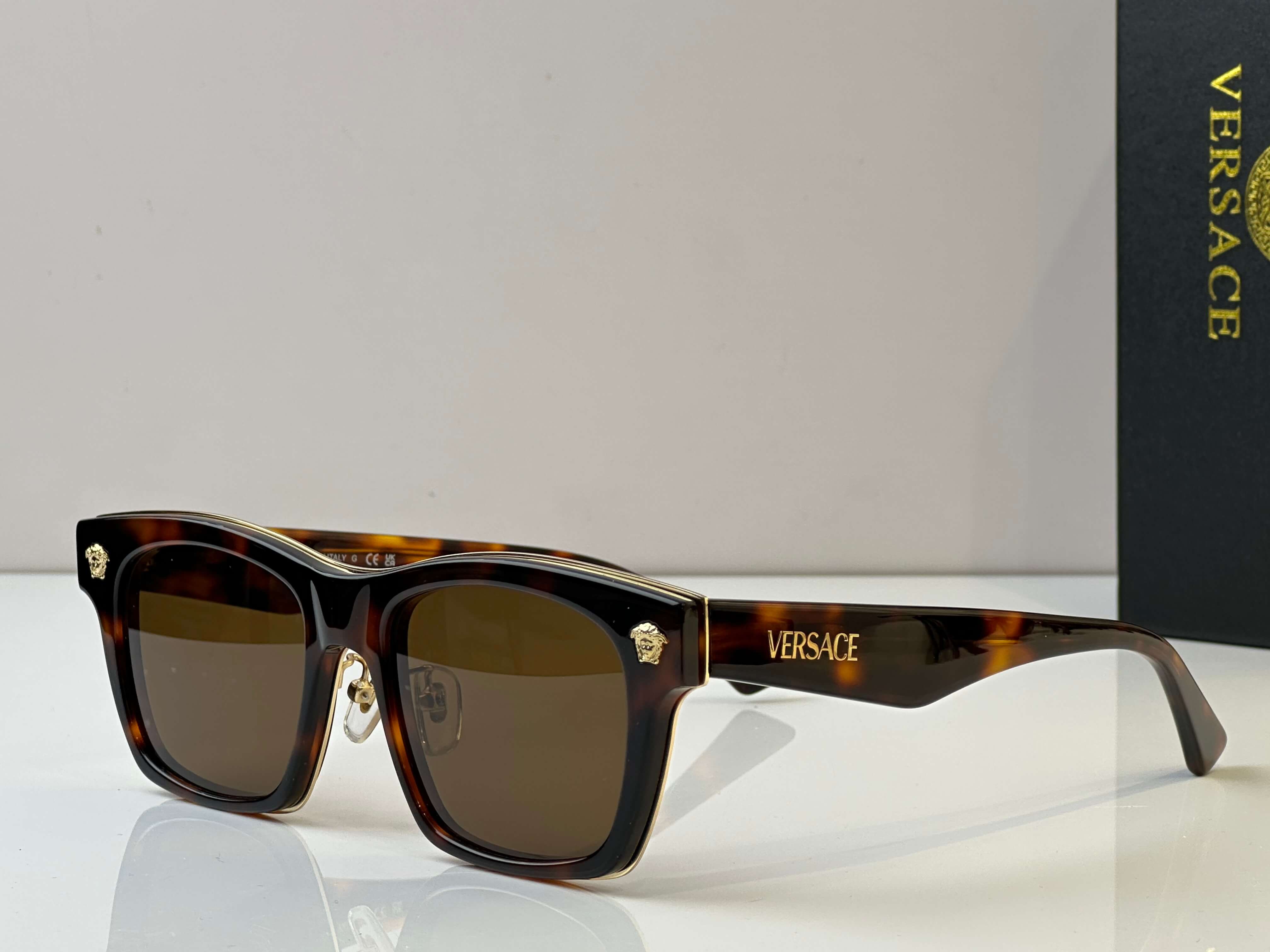 ✔ Gold-tone Versace logo & Medusa accents on the temples for signature luxury.